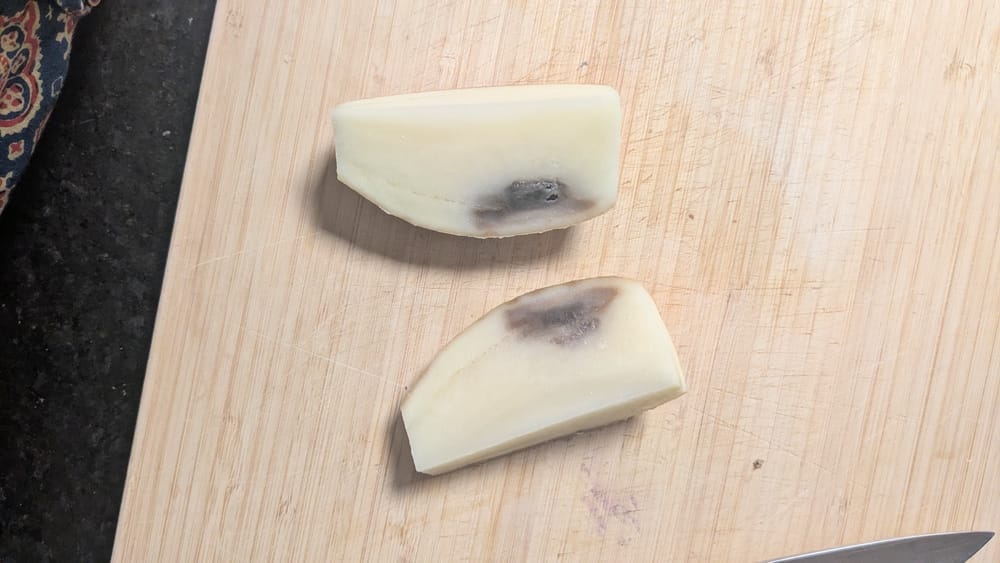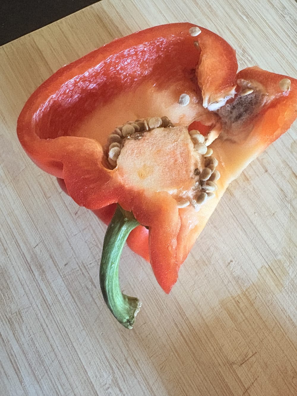 I wanted to cook a simple Indian curry for dinner, with potatoes, bell peppers and the rest of the onion. In what was becoming a cursed ritual, one of the potatoes and a bell pepper were already rotting when I cut into them. At this point, cooking with these veggies was a race against time. I made it work anyway. Chopped around the bad bits, threw everything into a pan, and let the spices do the heavy lifting.