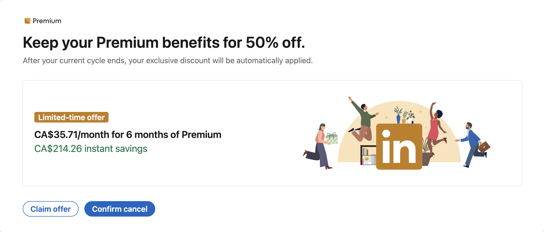 People canceling are basically the biggest threats to companies offering recurring subscriptions, so they add extra steps just to play on your nerves: Are you sure you want to cancel, are you aware you will lose your InMails, do you confirm, are you really sure, like 100% serious?
