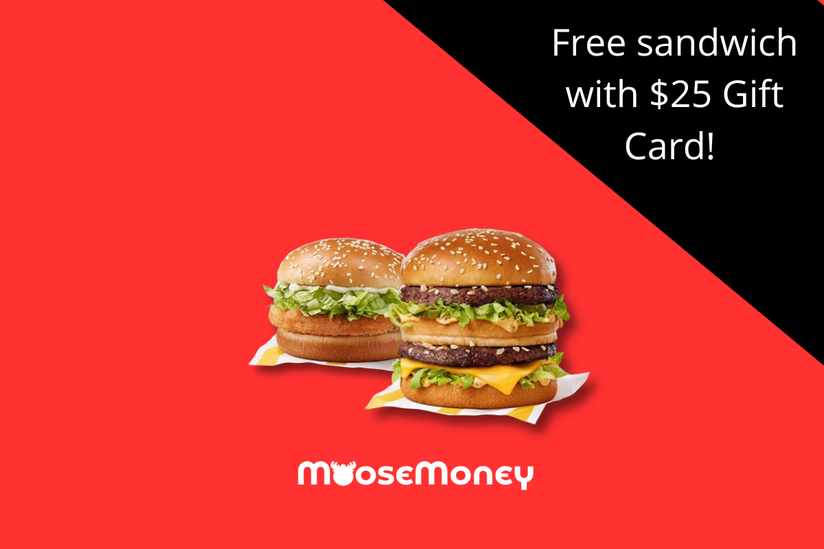 Until December 31, 2025, if you spend $25 on McDonald’s gift cards in-restaurant at the front counter, they’ll hoof over a coupon for a FREE Big Mac, McChicken, or McVeggie! You can buy the gift card as a Christmas gift for someone special, or keep it for yourself (I won’t tell). If you do, it’s basically like scoring a 28% discount on your own McDonald’s feast. (I checked what Bic Mac's and McChicken's are going for these days, and they can be as much as $6.99!) That’s some Grade-A, moose-approved savings! Keep in mind, this deal is only available at participating McDonald’s locations in Canada. Go forth and chomp proudly!