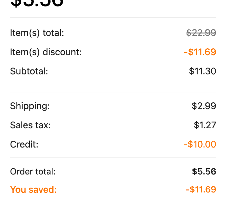 I received a 2-for-1 discount of $11.69, and another $10 spin-the-wheel game for a total of $21.69 off the original price.