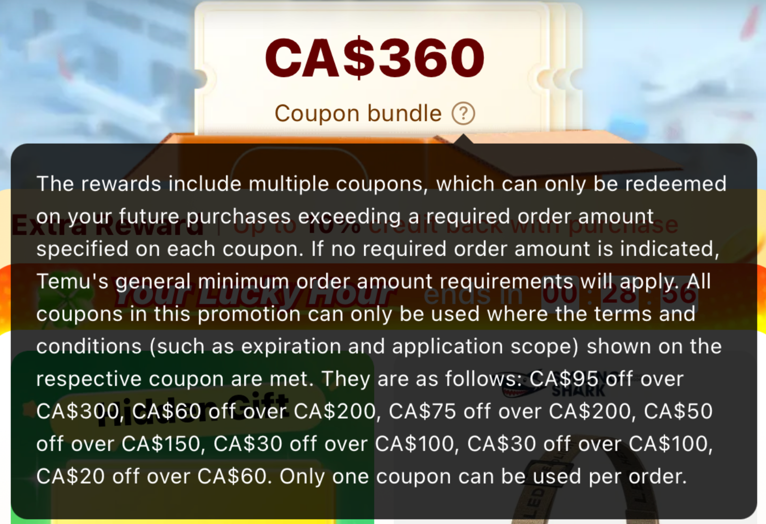 For this, you get a free spin or spin-to-win pop-up. However, in many cases, the spin always “wins” the same small reward. This is usually a coupon of some sort. In my research, there is rarely a big gift. It’s the classic psychology of winning something, so you stay engaged, while the valuable prizes are extremely unlikely. I didn’t get any high-value gifts via the wheel in my trials.