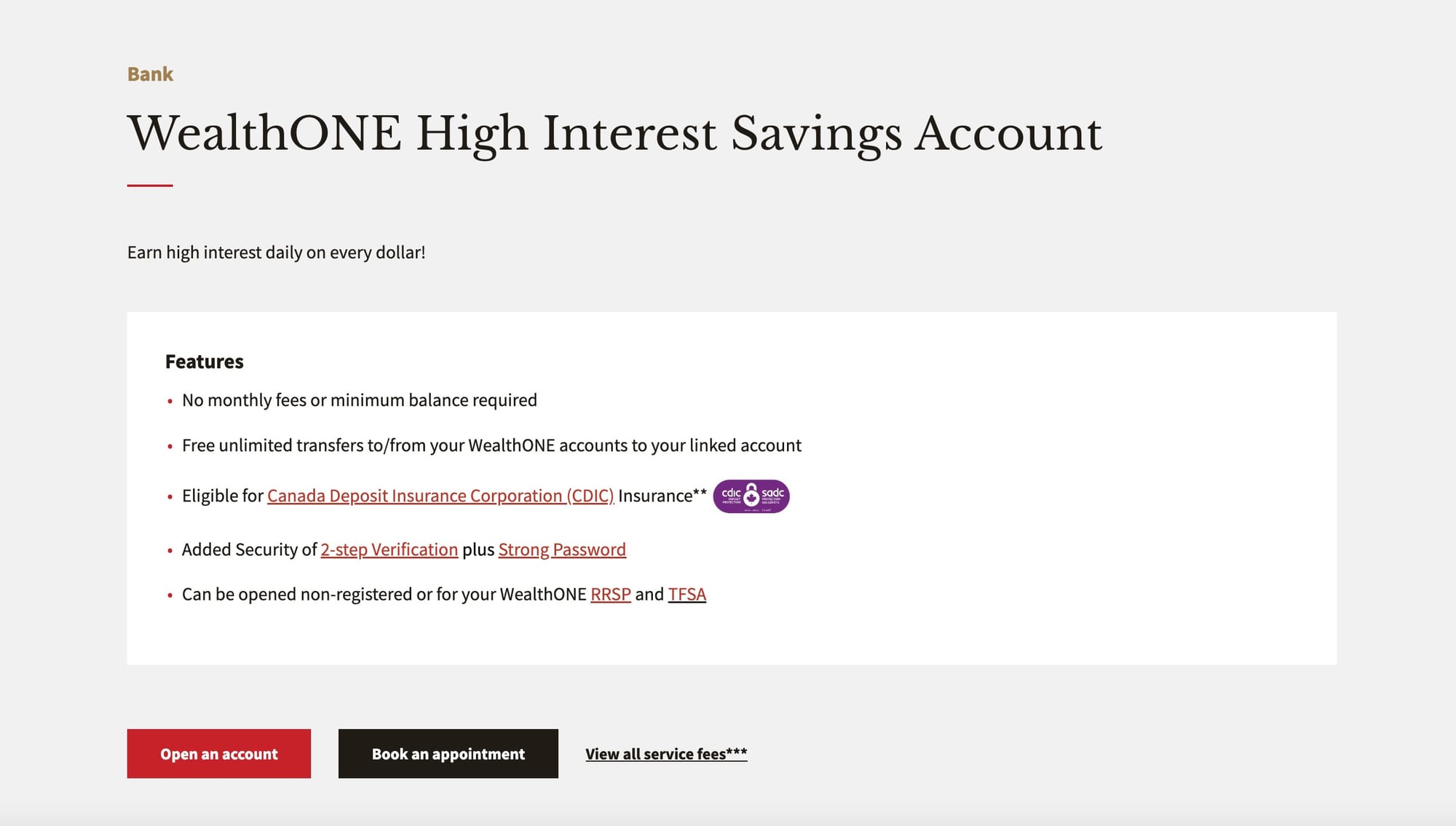 Ever heard of WealthONE Bank of Canada? Neither had I, but they are an online-only bank that launched in 2016 to serve Chinese Canadians. While they still cater to the Chinese community, they have since expanded their operations and now offer financial products and services to all Canadians. This includes a high-interest savings account with a competitive interest rate, unlimited transactions, and no monthly fees.